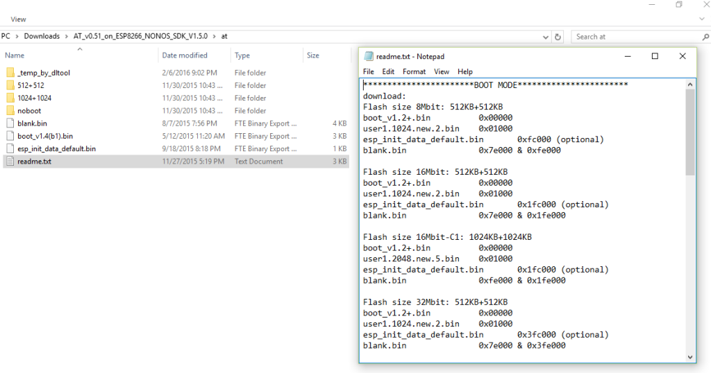 - The required files for RTOS firmware comes in the zip file named “AT_V0.60_on_ESP8266_NONOS_SDK_V1.5.2_20160203” and is inside “noboot” folder.