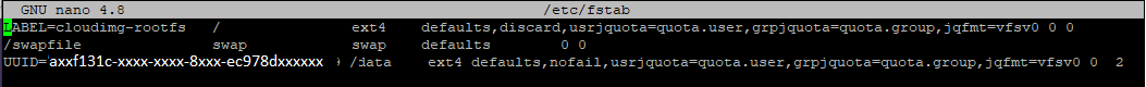Please note - wrong entry in the fstab file can make the system unusable. Please check the file first before rebooting. Use mount -a to check if the entries in fstab file is good.